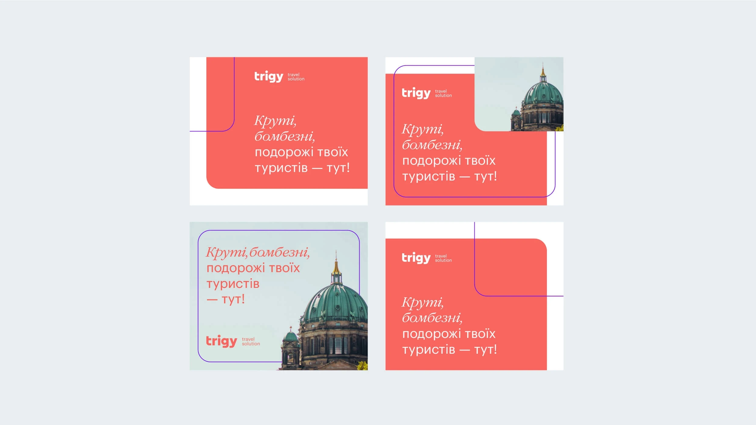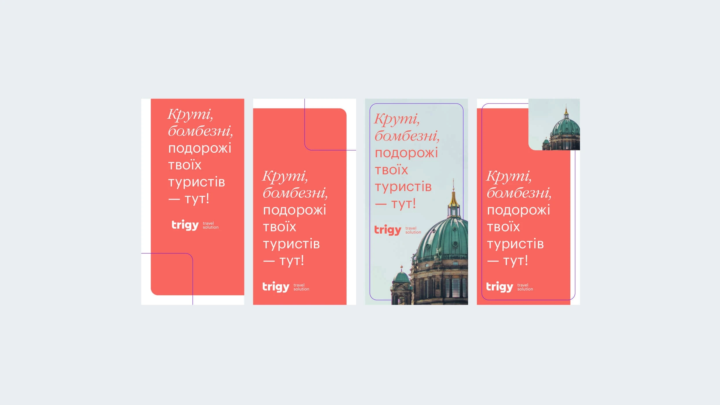 Trigy was created for a very specific audience: travel agents who don’t just book — they build. With dozens of clients and increasingly complex requests, they needed a flexible solution that would let them create unique, modular routes across the globe. We named the brand Trigy — a short, catchy, tech-feeling name inspired by “trigger” and “trajectory.” The identity presents Trigy as a design tool for travel, built on grids, blocks, and dynamic visual language. The logo and supporting system reference maps, modules, and flexibility — with soft tech colors that feel reliable but modern. Instead of loud promotional visuals, we went with an interface-like tone, suggesting control, clarity, and creativity. Trigy gives travel agents the freedom to design trips that are as individual as their clients — and that’s exactly what the brand looks like.